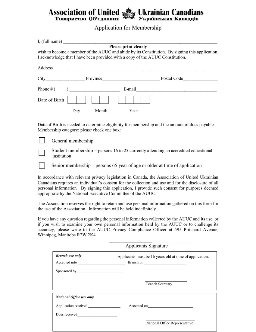 Fill out the application form and submit to AUUC National Office